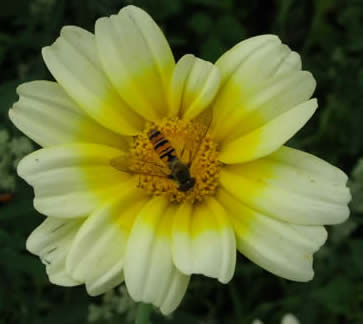 Most of the 12 plants in 2007 had the yellow and cream coloured flowers of the discolor variety of crown daisy; one was all yellow and the rest were not in flower. This is a fairly typical proportion in southern Europe, where the two-coloured form is the most usual, and this continued to be the mix for the next two years.