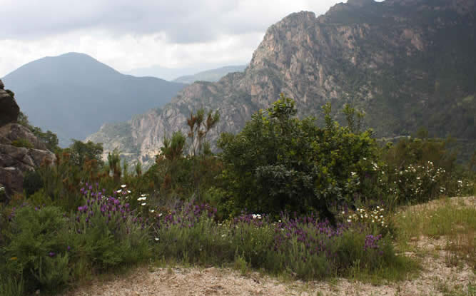 Cistus, tree heather, French lavender add structure and colour. Corsica has a good range of orchids and endemic island flowers will be a steep learning curve: Corsican butterwort, Corsican crocus, Corsican saxifrage and Corsican storksbill are some of the species to look for.